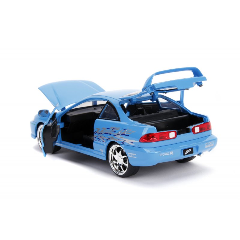 Mia Toretto and her 1995 Honda Integra Type-R from the first opus of the Saga Fast And Furious are just waiting for you! This 1:24 scale die-cast replica with the doors, trunk and opening hood perfectly matches the design of the Fast And Furious license car!