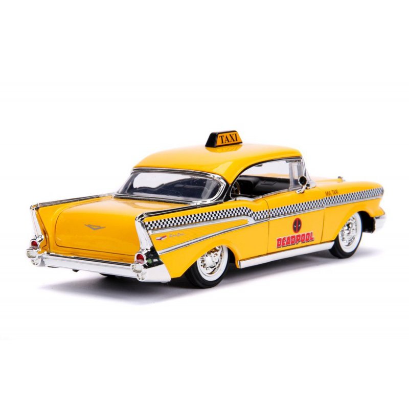 How does the "Merc With a Mouth" get around town? With his own personalized "Deadpool" cab! With its doors, trunk and hood opening, this 1:24 Chevy Bel-Air cab will stand out in any Deadpool collection. This vehicle includes a 7cm Deadpool figurine with a special candy red color. Add it to your collection today!