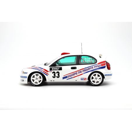 At the beginning of the 2000 season, Sébastien Loeb had no budget. He finally entered the French Gravel Rally Championship with the help of Jean-Pierre Champeau. The result was very good as he won the championship in the 2-wheel drive category at the wheel of a Citroën Saxo Kitcar. For many, he was considered as one of the greatest hopes of French rallying. As a result, and as part of his partnership with the France FFSA Team, the decision was taken to allow Sébastien Loeb to get a taste of the WRC at the wheel of a World Rally Car! The Frenchman made his debut in the world's elite at the wheel of a Toyota Corolla WRC (the car that won the 1999 China Rally with Didier Auriol at the wheel). In the Tour of Corsica and then the San Remo Rally, Sébastien Loeb created a sensation by finishing in the top 10 each time! These results put this Corolla WRC in the FFSA colours into the history of the WRC and of Sébastien Loeb.