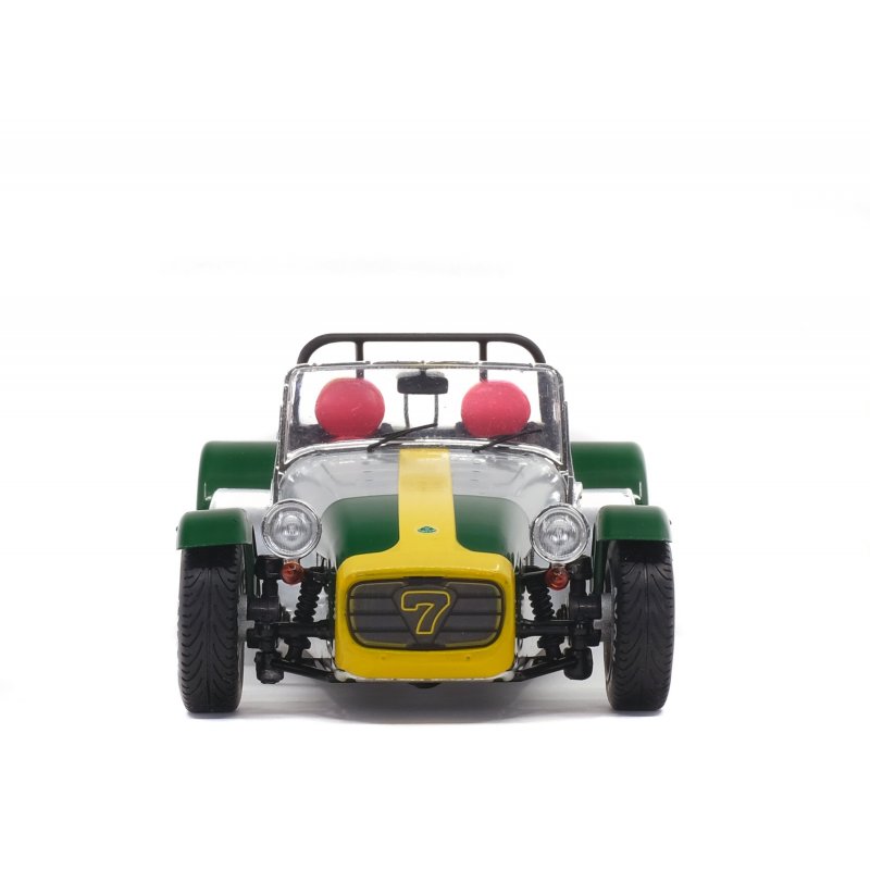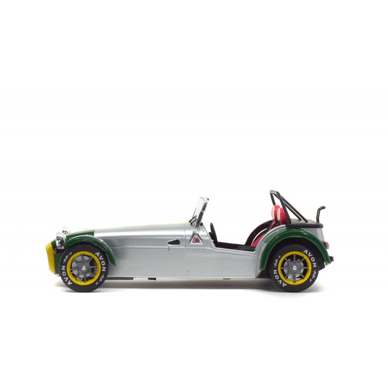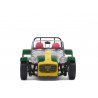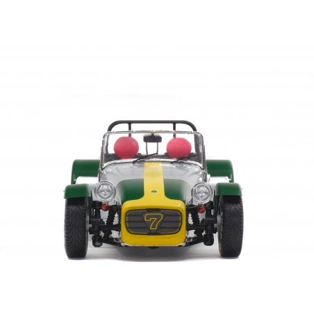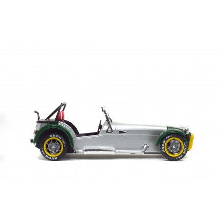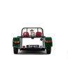 The Lotus Seven is the original English car designed by Colin Chapman and whose only "official copies" are the Caterhams. Like many English ladies, she likes to dress in green, which offers a quite explosive cocktail with the rest of the aluminium car.