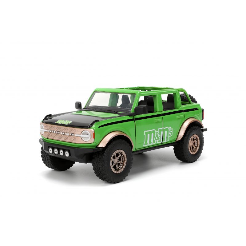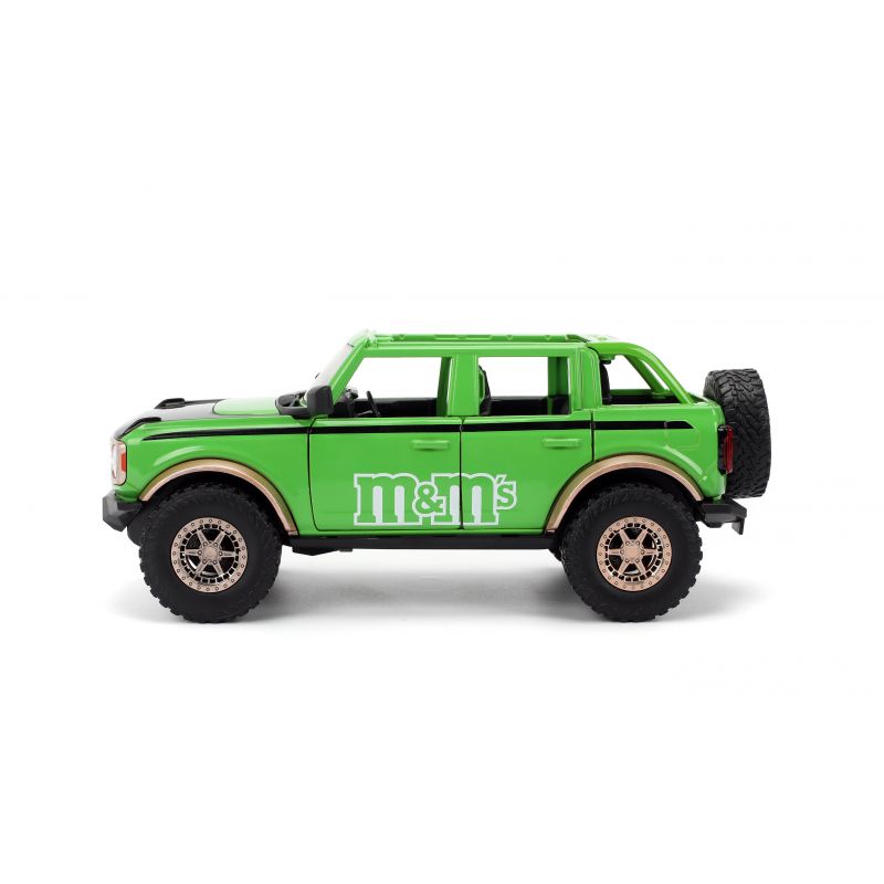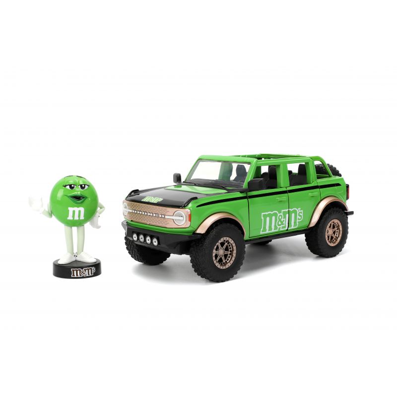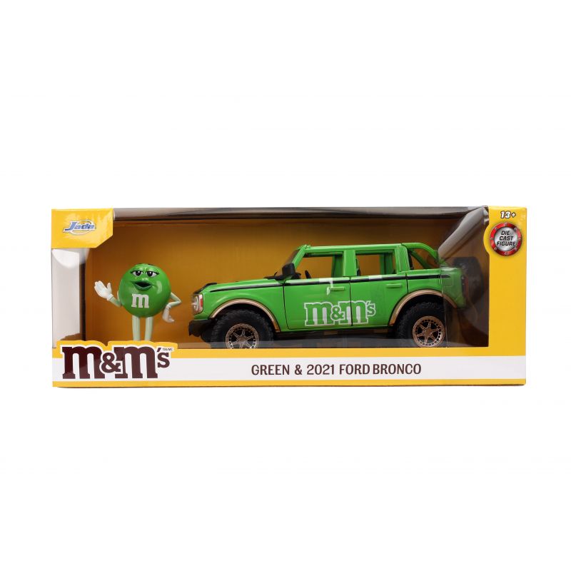 Voici la Ford Bronco 1:24 de 2021, un modèle impressionnant accompagné de la figurine M&M’s verte, dans un vert éclatant qui saura ravir les fans de la célèbre marque de bonbons. Ce véhicule tout-terrain allie puissance et style, tout en rendant hommage à l’univers M&M’s. Parfait pour ajouter un peu de fun et de couleur à votre collection !