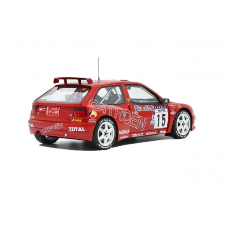 Dans les années 90, la « deuxième division » du Championnat du Monde des Rallyes est composée des voitures deux roues motrices avec un moteur 2L. Ces voitures sont appelées « Kit Car ». Elles font partie du folkore rallystique des années 90 et restent ancrées dans les mémoires grâce à leur son atypique. Si on connait principalement les 306, Clio et Mégane Maxi, de nombreux autres modèles complètent également la catégorie. Ainsi, avant la Xsara Kitcar, Citroën s’est lancé dans la discipline avec la ZX ! Si elle s’impose et entre dans la légende au Dakar, la ZX version Kit Car peine à convaincre en rallye. Il n’y a peut-être qu’en Espagne où cette Citroën parvient à séduire et à marquer les esprits. La preuve avec Jesus Puras qui remporte le titre national en 1997 au volant de cette auto !