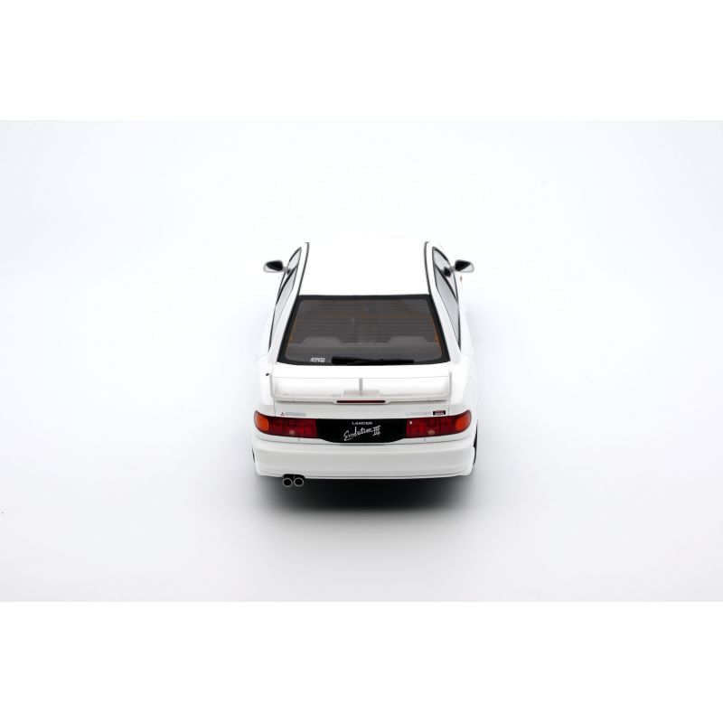 Quand on pense voiture japonaise des années 90/début 2000 on pense automatiquement à la Subaru Impreza et à sa meilleure ennemie, la Mitsubishi Lancer ! Les « Evo » sont les versions sportives de la berline de « Mitsu’ ». A partir de 1992, et pendant plus de 10 ans, elles défendent les couleurs de la marque nippone sur les spéciales du Championnat du Monde des Rallyes. Entre 1992 et 2005 Mitsubishi décroche 4 titres pilotes et 1 titre constructeurs ! C’est en 1996, avec l’EVO III, que cette success story débute grâce au premier titre du Finlandais Tommi Mäkinen. Cette victoire attire forcément de nombreux amateurs de rallye vers la version de série qui développe 270cv grâce à son moteur turbocompresseur. Une auto dont l’aérodynamique a été totalement repensée par rapport à l’EVO II.