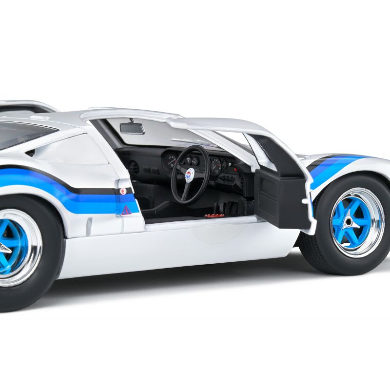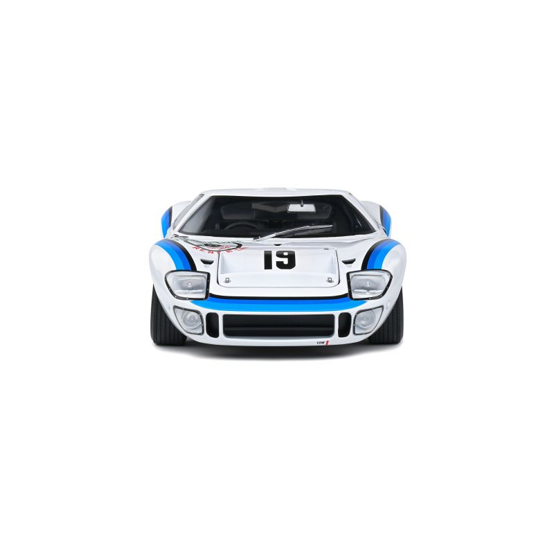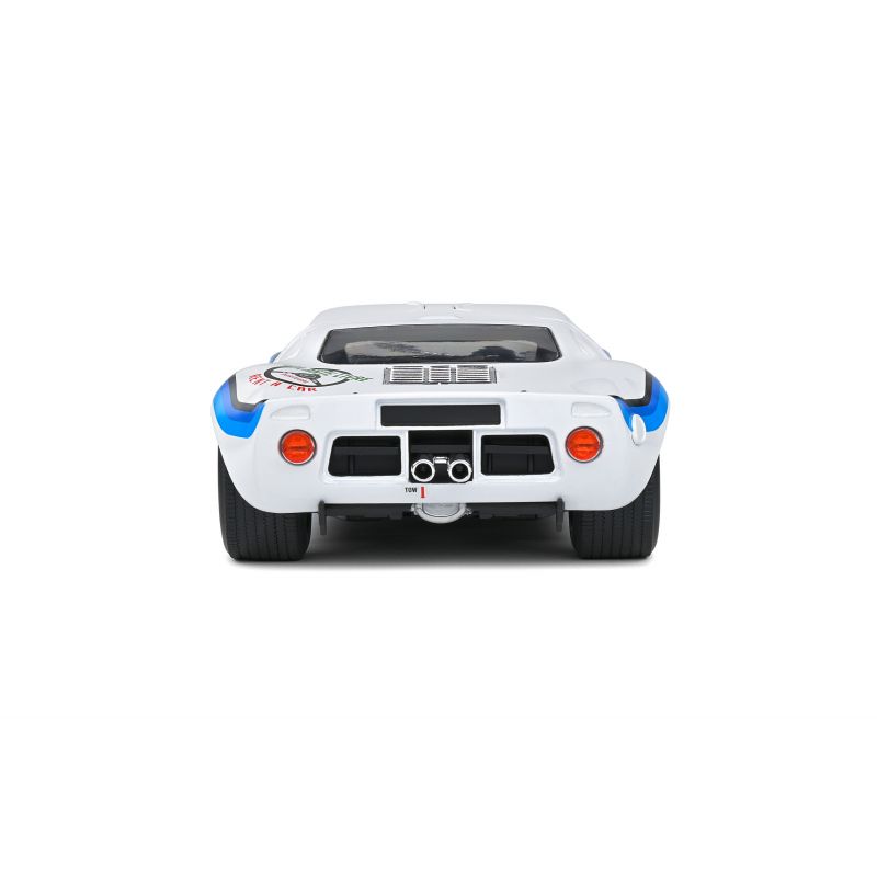 Voici une GT40 à l'histoire particulière ! Elle a été vendue au pilotee portugais Emilio Marta qui vivait à Luanda (Angola, alors colonie portugaise). Il a disputé le championnat local trois saisons e suite avec ce modèle et l'a remporté en 1973 ! Revenu au Portugal n 1975, Marta a continué à Rouler avec cette GT40 jusqu'en 1979, date à laquelle il a vendu sa belle americaine à un collectionneur suisse. La voici désormais dans votre collection au 1/18.